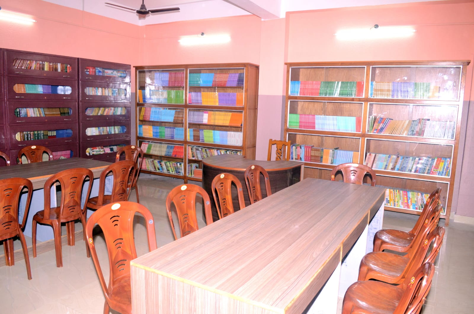 Well equipped, computerized LIBRARY with more than1800 titles and 6000 books. Seating cum reading space for more than 50 students. Library is well maintained and managed by qualified and experienced Librarian and Assistant. Every year new titles both curricular and co-curricular are added to the library. The college welcomes subscription to all new referred journals related to education and school subjects. Computer with WIFI internet facilityand books are available for ready reference by both the faculty and student- teacher.